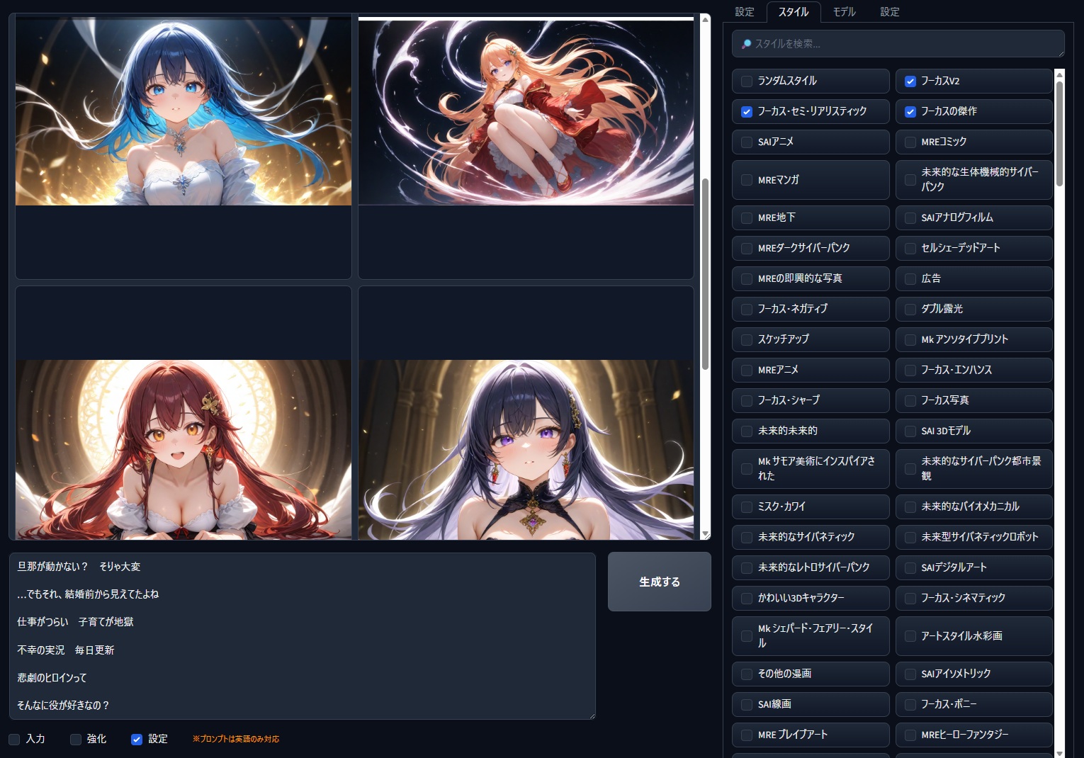 日本語に強く軽量。初回読込数秒、生成起動30秒